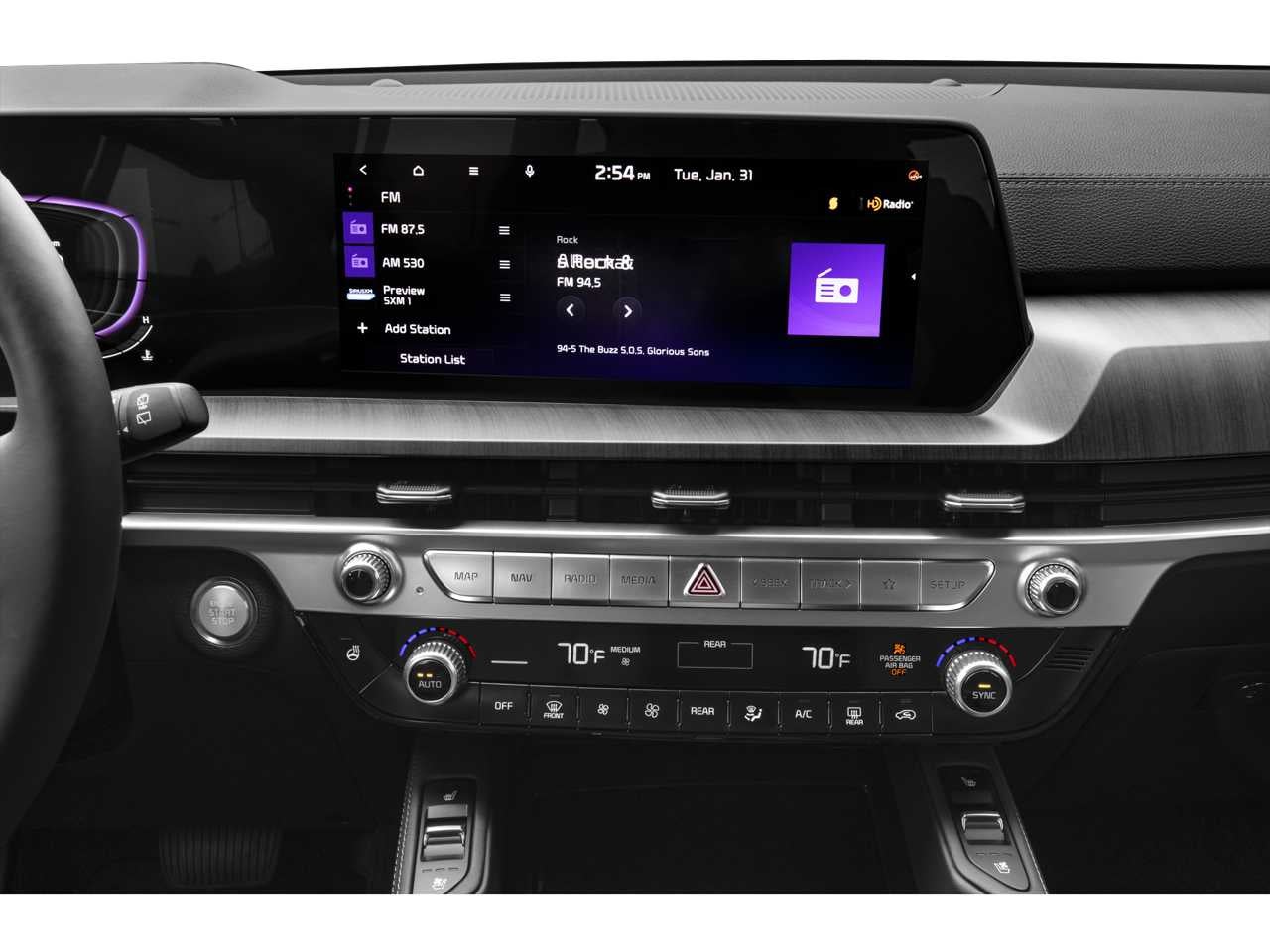 - Radio: AM/FM Display Audio System -inc: 12.3" audio display unit w/navigation, MAP OTA, driver talk, quiet mode, Android Auto and Apple CarPlay capability, SiriusXM, 6 speakers, multi-Bluetooth hands-free w/voice recognition, Telematics Mobile Unit (TMU) and Wi-Fi hotspot