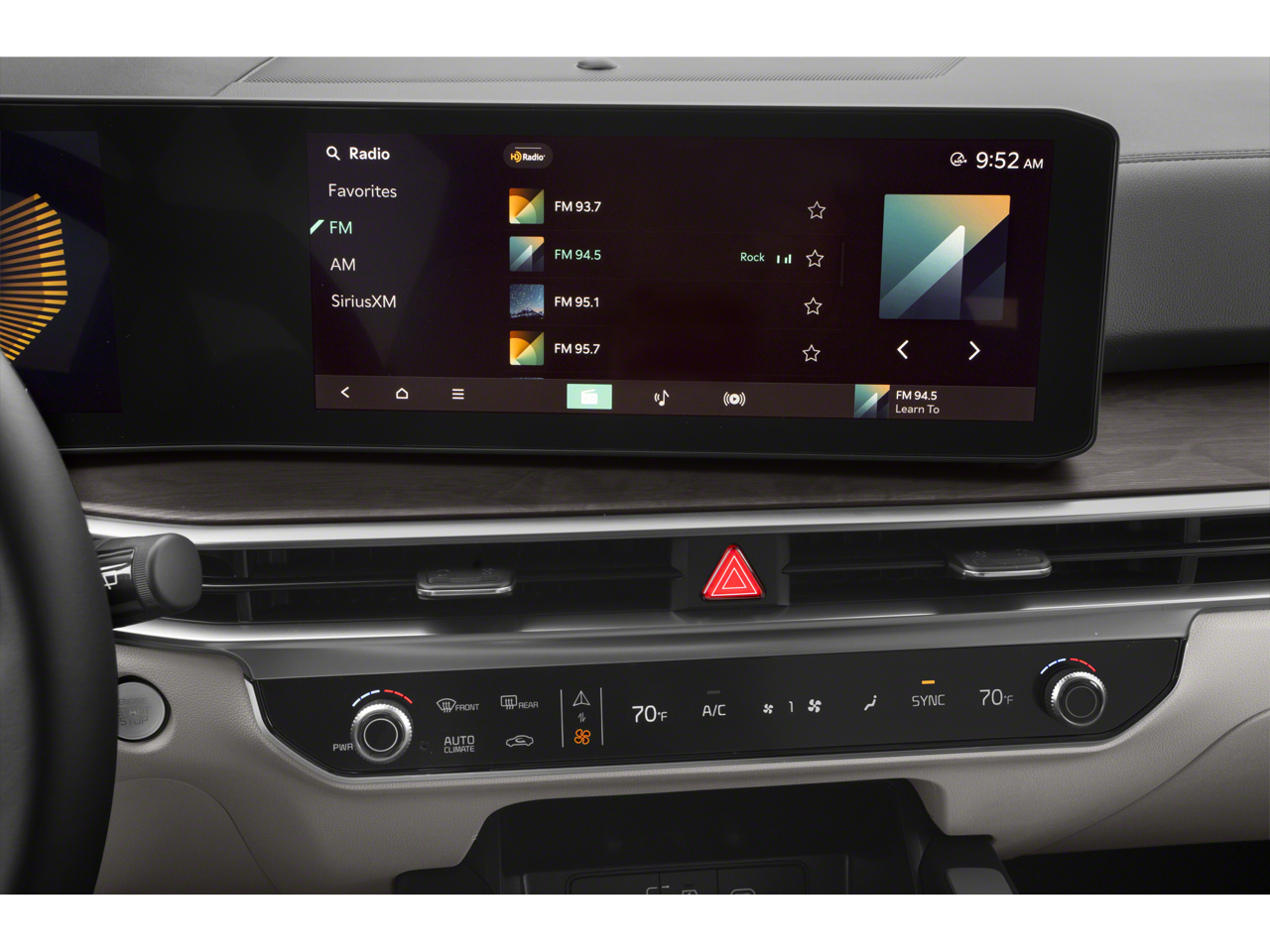 - Radio: AM/FM Standard Sound System -inc: 12.3" ccNC touchscreen, navigation, HD Radio, Bluetooth® w/audio remote control, wireless Android Auto and wireless Apple CarPlay, voice recognition, Sirius XM, modem, Kia Connect, Wi-Fi hot spot, Over-The-Air Updates (OTA), 6 speakers and USB
